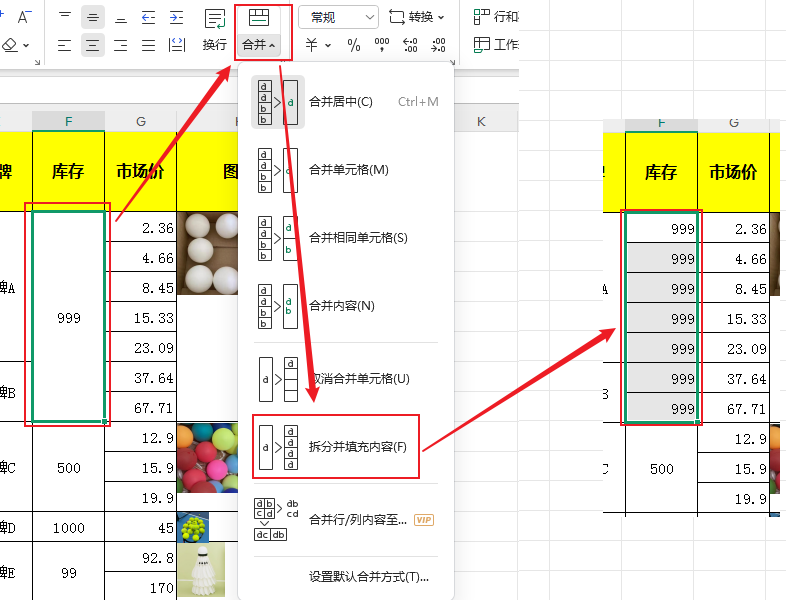 - 方法一:将所有合并单元格都拆分并填充内容,按照常规循环EXCEL内容读取数据。此方法优点是RPA代码比较简单实现,缺点是需要提前对表格进行改动且改动过程容易出错。