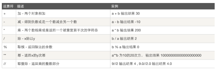 int:数字:计算。+ = * / % // .....