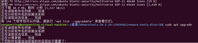 sudo apt upgrade(检测软件是否安装到了最新版本)
