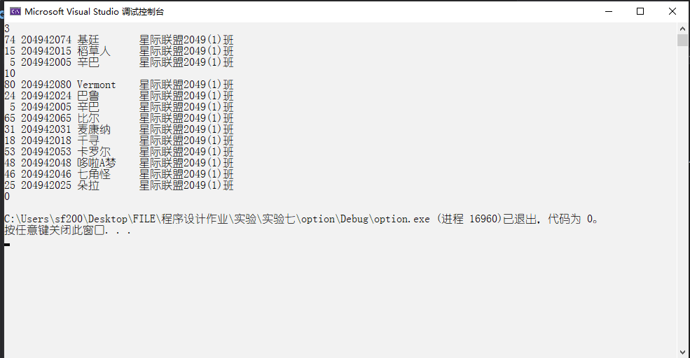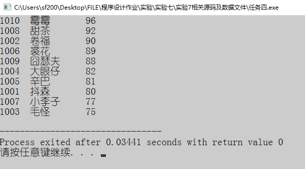 运行程序,屏幕上正确输出了排序后的学生信息。