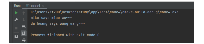 //task4.cpp #include <iostream> #include "pets.h" void play(MachinePets *ptr) { std::cout << ptr->get_nickname() << " says " << ptr->talk() << std::endl; } int main() { PetCats cat("miku"); PetDogs dog("da huang"); play(&cat); play(&dog); }
