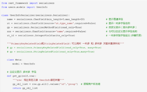 xxx = serializers.SerializerMethodField(read_only=True) # 自定义显示(显示多对 多)
