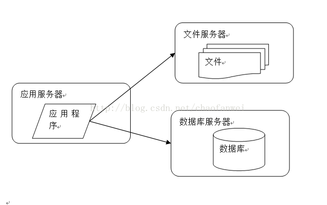 随着网站业务的发展,一台服务器逐渐不能满足需求;这时候就需要将应用和数据分离,如图:
