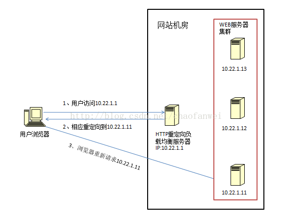 这种负载均衡方案的优点是比较简单,缺点是浏览器需要每次请求两次服务器才能拿完成一次访问,性能较差;使用HTTP302响应吗重定向,可能是搜索引擎判断为SEO作弊,降低搜索排名。重定向服务器自身的处理能力有可能成为瓶颈。因此这种方案在实际使用中并不见多。