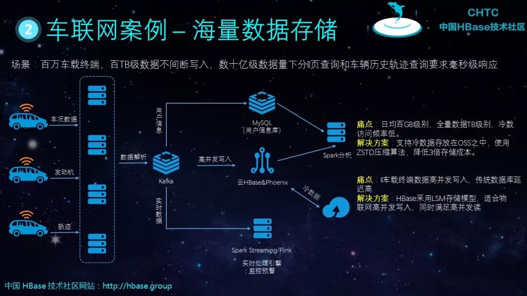 HBase 在风控场景、车联网/物联网、广告推荐、电子商务等行业有这广泛的使用。下面是四个典型案例的架构,由于图片里有详细的文字,我就不再打出来了。