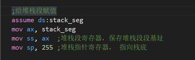 >> 堆栈段赋值