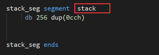 示例代码: stack_seg segment stack db 256 dup(0cch) stack_seg ends data_seg segment g_db db 56h g_dw dw 6666h g_dd dd 777777h g_dq dq 888888888h g_dt dd 999999h d_db db "hello world$" data_seg ends data_seg1 segment g_ary1 dw 5566h, 7788h, 9966h g_ary2 dw 10h dup(6666h) g_ary3 dw 9999h, 16 dup(7777h), 4455h, 16 dup(3322h) data_seg1 ends code_seg segment start: ;给数据段赋值 mov ax, data_seg mov ds, ax assume ds:data_seg mov ax, g_dw ;给堆栈段赋值 assume ds:stack_seg mov ax, stack_seg mov ss, ax ;堆栈段寄存器,保存堆栈段段基址 mov sp, 255 ;堆栈指针寄存器, 指向栈底 mov ah, 4ch mov al, 0 int 21h code_seg ends end start