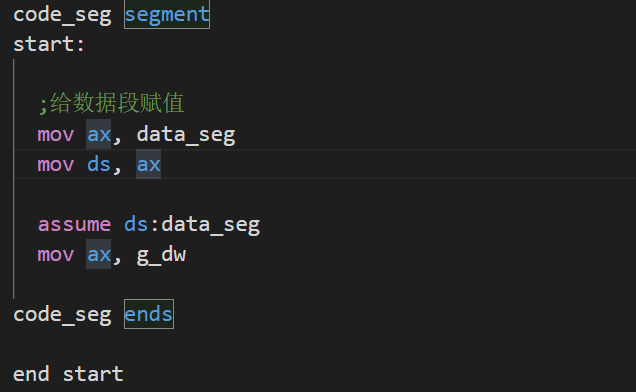 assume ds:data_seg mov ax, data_seg mov bx, g_dw mov bx, offset g_dw