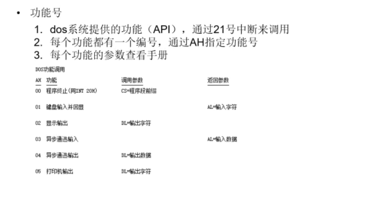 >> 调用dos功能号