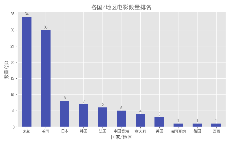 各国家的电影数量比较