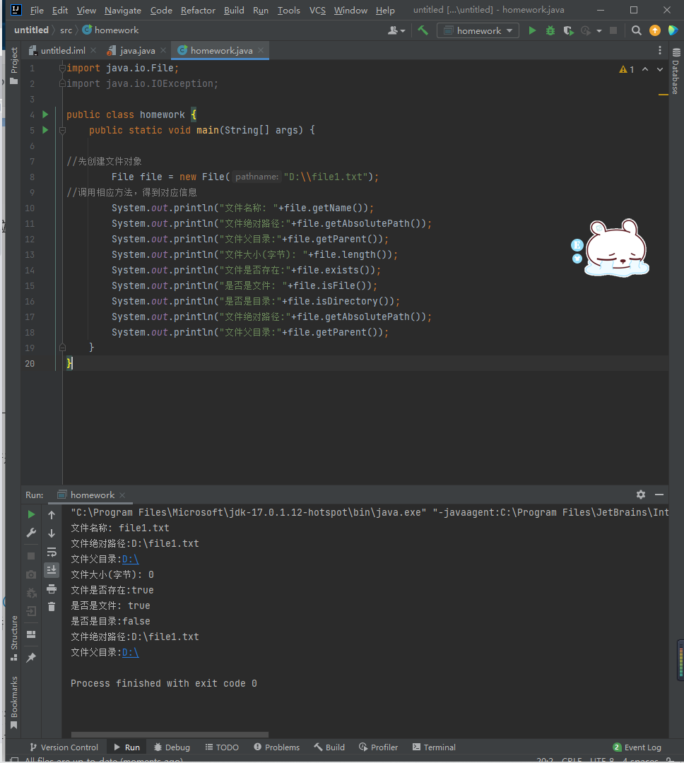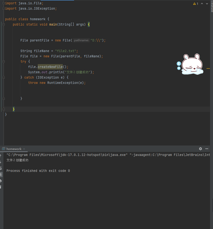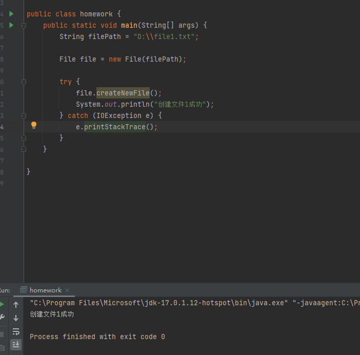 System.out.println("创建文件1成功");