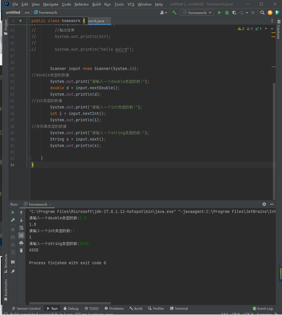 System.out.print("请输入一个double类型的数:");