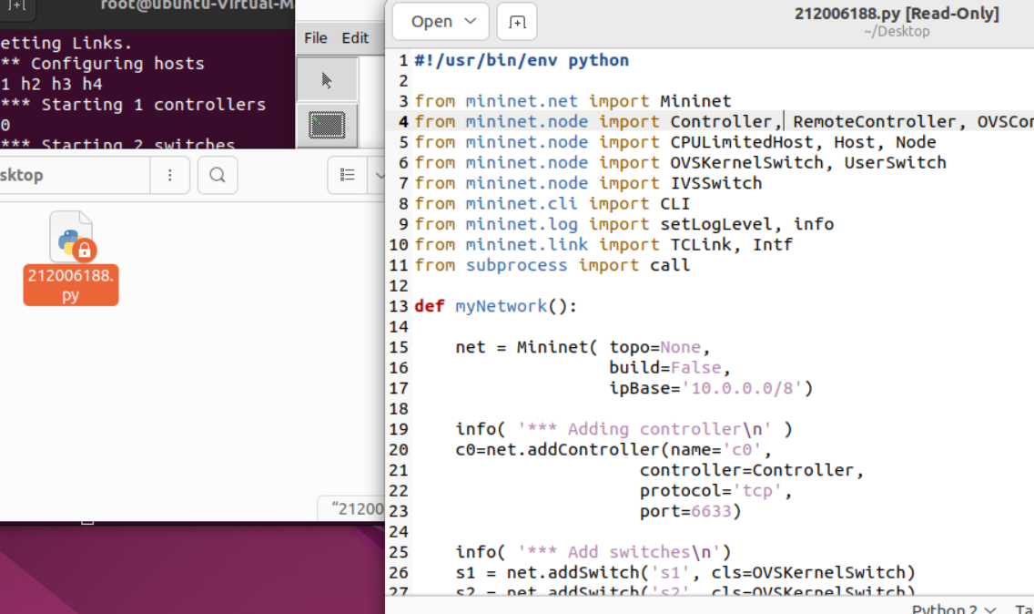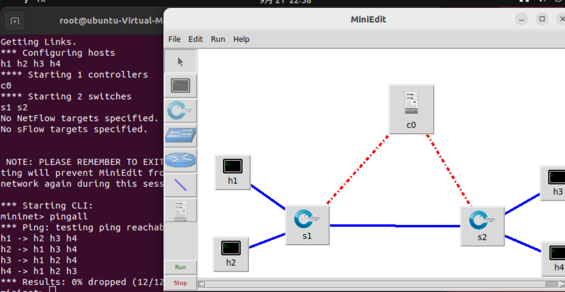 个人心得:在使用命令行定义网络时,容易忽略细节上的东西,而且命令行在执行任务时会产生很多输出内容,导致寻错很困难。不仅如此,在所有的步骤中,对于整体大环境的要求也非常高,例如关于python的存在的问题等。一定要注意环境配置以及命令行输入时的仔细问题,及时发现错误,避免从头来过。