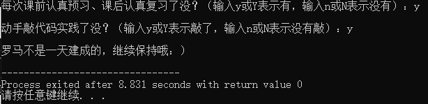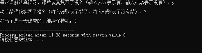 11 printf("\n罗马不是一天建成的,继续保持哦:)\n");
