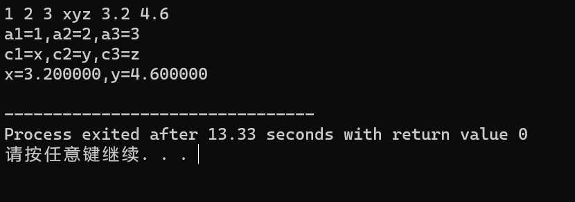 9 printf("a1=%d,a2=%d,a3=%d\n",a1,a2,a3);