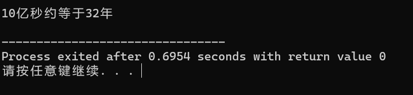 printf("10亿秒约等于%d年\n", year);