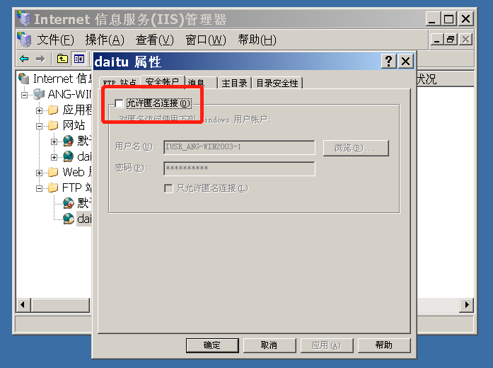 建议:FTP权限全部勾线,具体权限在NTFS修改