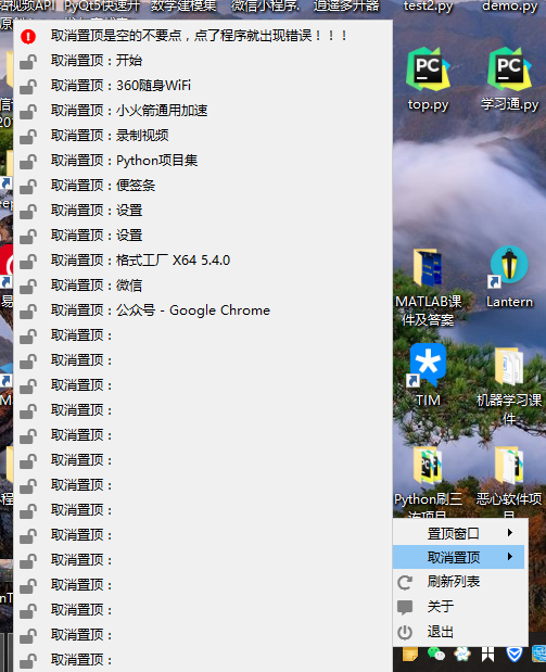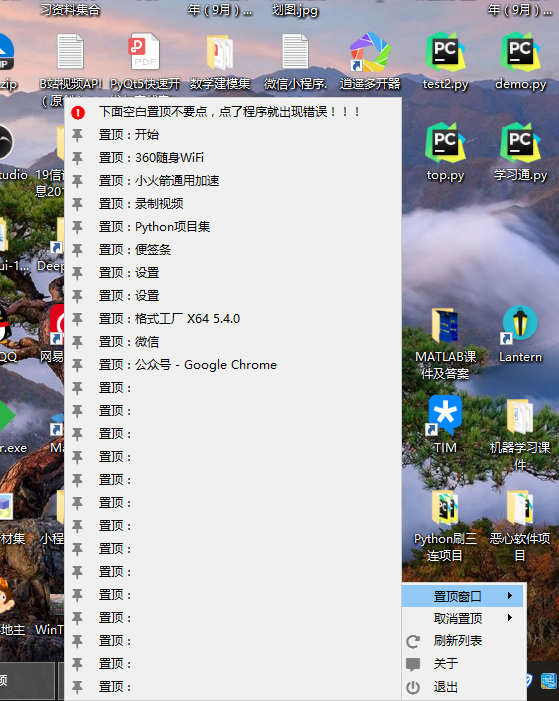 所以!我编写了个窗口置顶的软件以备不急之需。