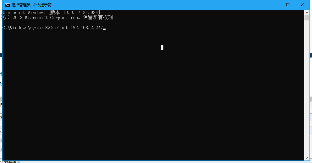 2.打开cmd 输入 telnet XXX.XXX.X.XXX(目标ip)例: telnet 192.168.2.247