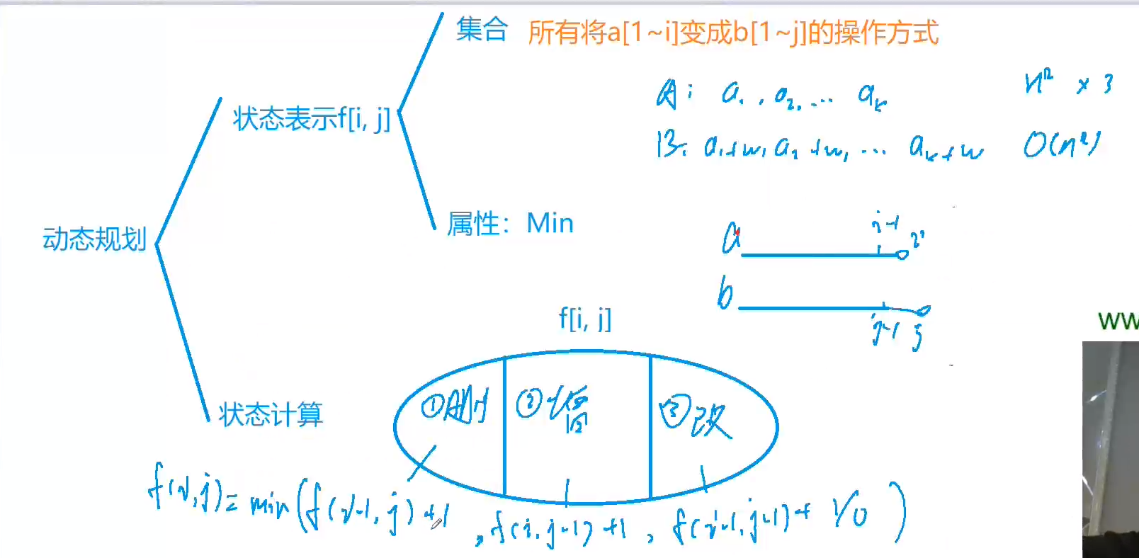#include<iostream> #include<algorithm> using namespace std; const int N=1010; int n,m;char a[N],b[N]; int f[N][N]; int main() { scanf("%d%s",&n,a+1); scanf("%d%s",&m,b+1); //因为存在i-1等操作,所以必须初始化0的位置 for(int i=0;i<=m;i++) f[0][i]=i; for(int j=0;j<=n;j++) f[j][0]=j; for(int i=1;i<=n;i++) for(int j=1;j<=m;j++) { f[i][j]=min(f[i-1][j]+1,f[i][j-1]+1); if(a[i]==b[j]) f[i][j]=min(f[i][j],f[i-1][j-1]); else f[i][j]=min(f[i][j],f[i-1][j-1]+1); } cout<<f[n][m]<<endl; return 0; }