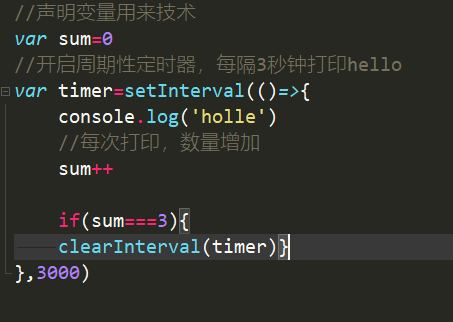 原理就比如闹钟之类。首先开启一个周期定时器,然后 做添加sum++计数器, 那么 如果当他打印3次后,需要达到的效果是清除定时器,