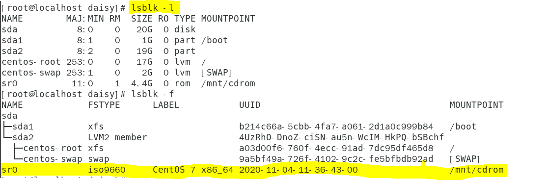- 目录树形结构展示分区信息与挂载(可以看见上次挂载的光盘)