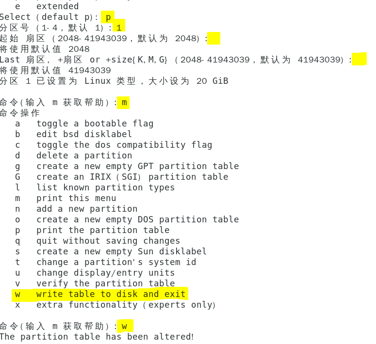 - 1~4中的1代表主分区(其余冒号中没写的直接回车)