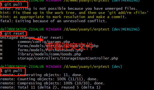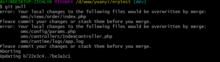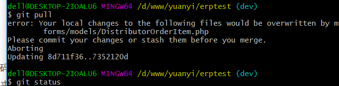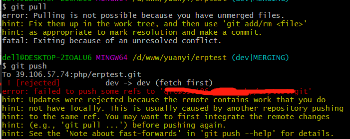 问题三:git pull 报错: “fatal: Exiting because of an unresolved conflict.”