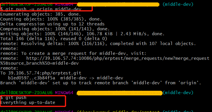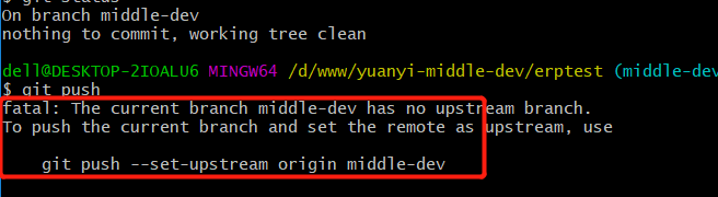'fatal: The current branch middle-dev has no upstream branch. To push the current branch and set the remote as upstream, use git push --set-upstream origin middle-dev