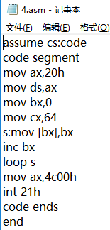 二:综合使用 loop,[bx],编写完整汇编源程序,实现向内存 0:200~0:23F 依次传送数据 0~63(3FH)。
