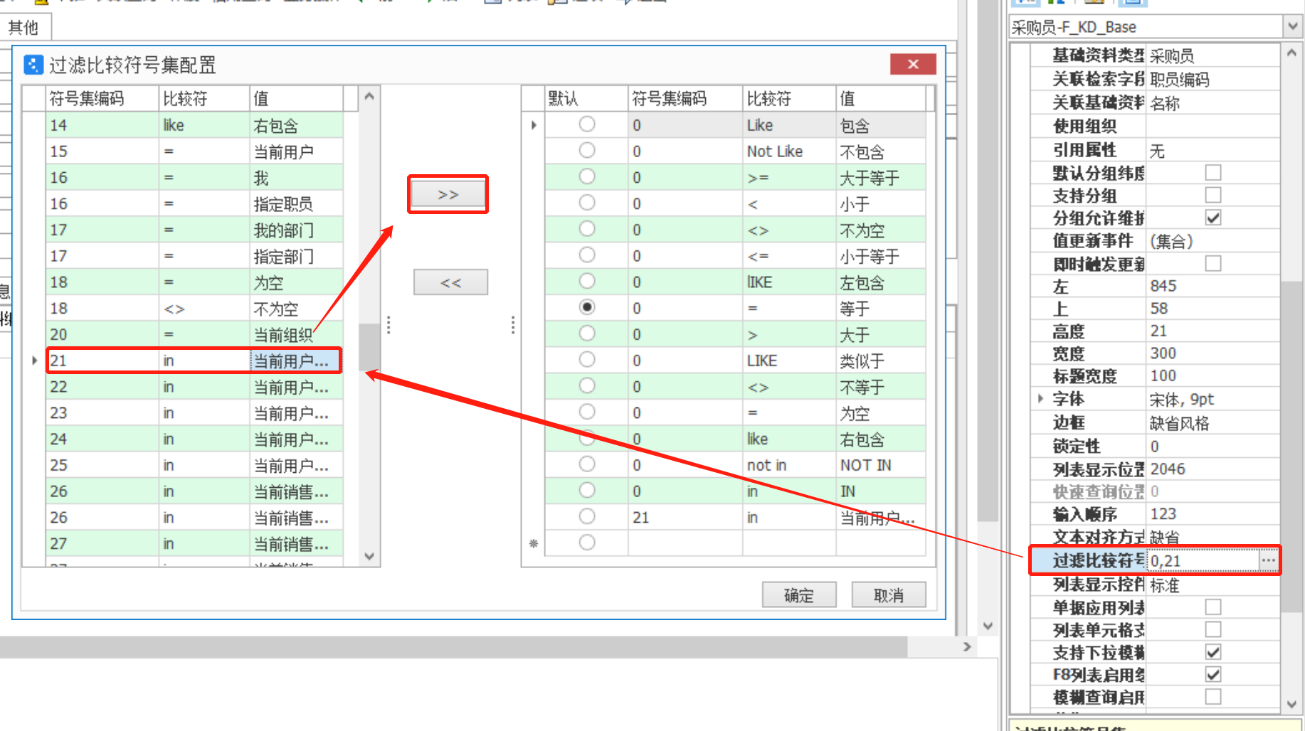 金蝶云星空配置自定义字段的过滤比较符号集,简化权限配置