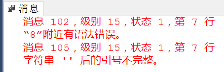 下推后会提示语法错误或违反访问规则: