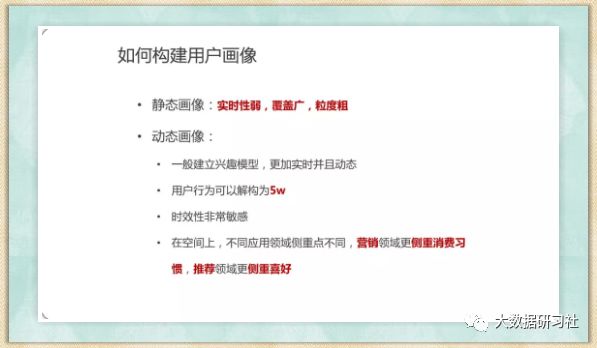 好学君本人对用户画像一直处于懵逼状态,偶尔想装X还心底发虚,直到我看到了下面这份资料。这是来自前阿里推荐算法工程师姚凯飞的一次分享,对用户画像讲得比较透彻,个人觉得这个绝对是要收藏的了。