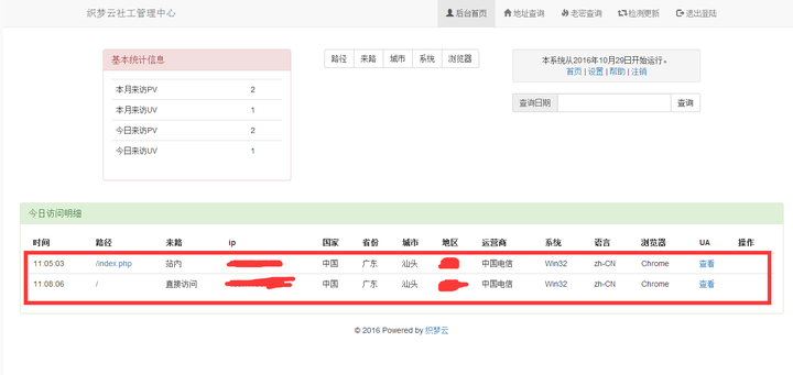 因为IP查询调用的是百度的接口,需要自己申请key 地址:登录百度帐号 一个key可查询五千次