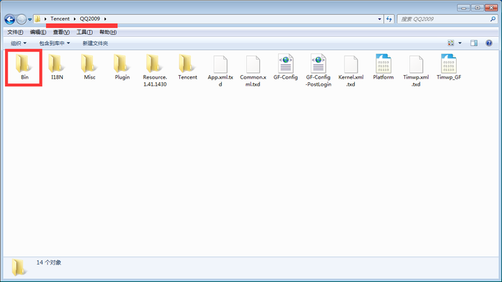 第四步打开Bin文件夹,找到名为QQ的程序。打开他。