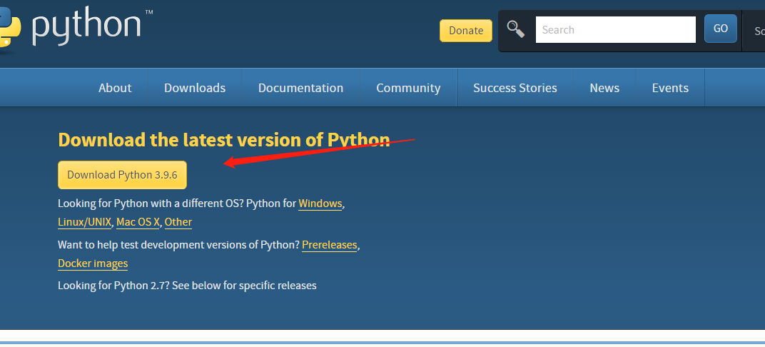 1.进官网:https://www.python.org/downloads/ 点击Download python 3.9.6