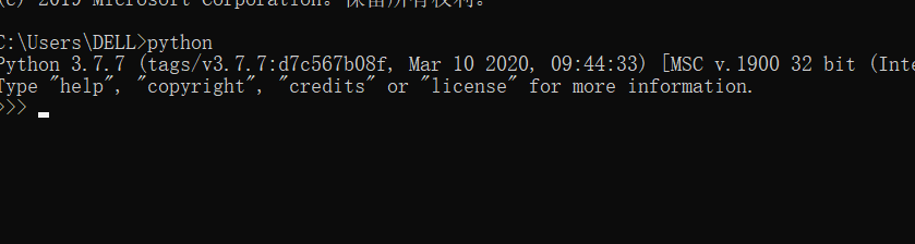 打开cmd 输入python:图中这样表示安装成功