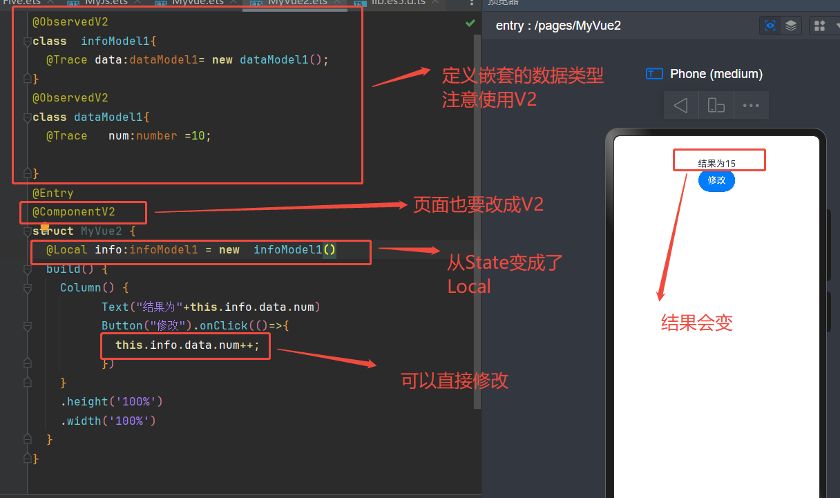 鸿蒙中嵌套数据的响应式