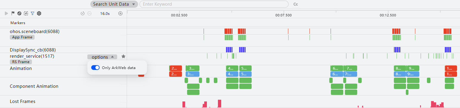 - 打开Only ArkWeb data开关,筛选过滤出包含ArkWeb帧的数据。