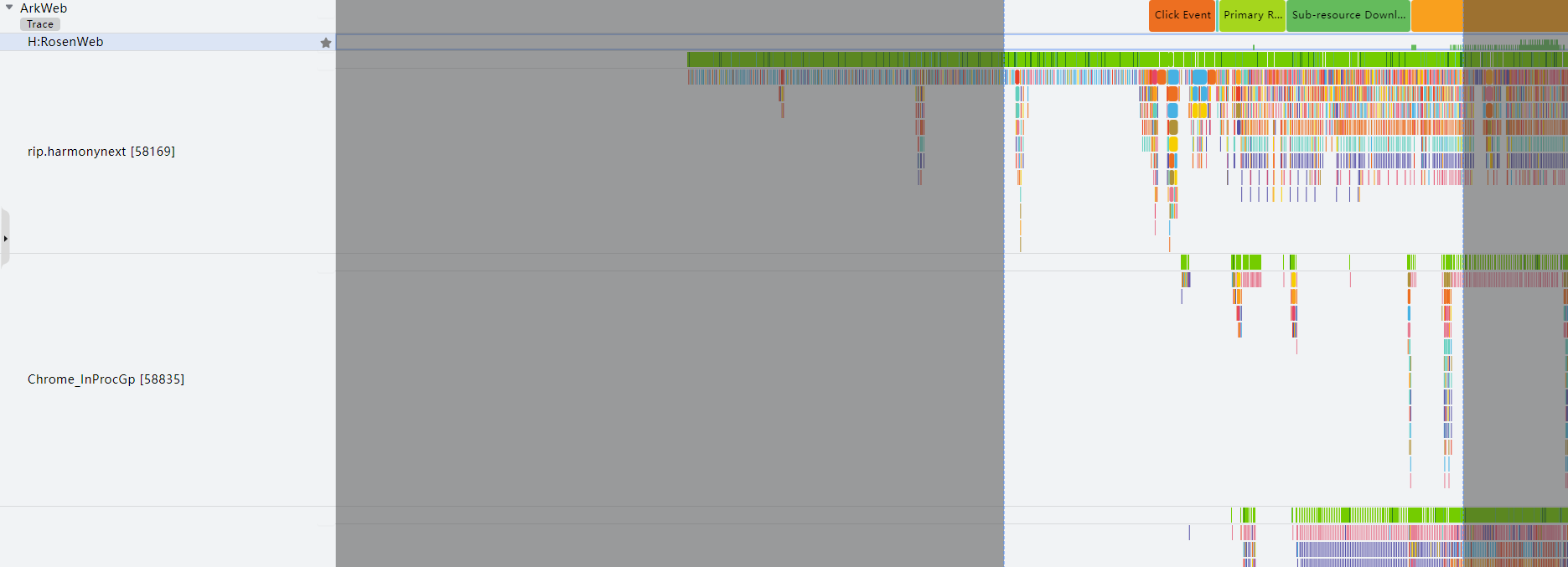 ArkWeb子泳道聚合了Web相关线程的trace信息,通过分析Web渲染过程的关键函数的trace点,可以分析出每一帧的执行流程。聚合的Web线程信息如下: