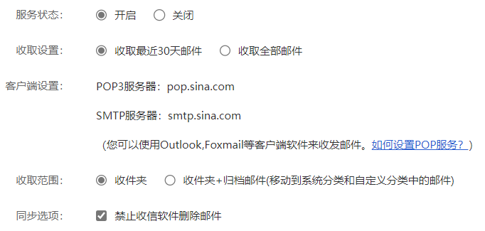 一、开启邮箱的SMTP服务——以新浪邮箱为例