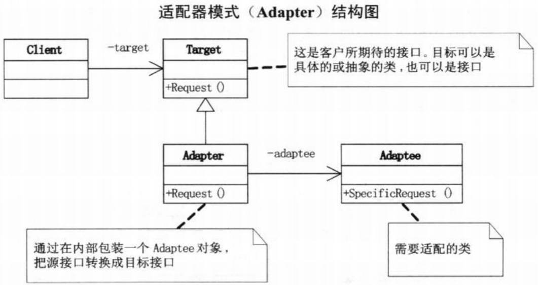 适配器模式(Adapter),将一个类的接口转换成客户希望的另外一个接口。Adapter模式使得原本由于接口不兼容而不能一起工作的那些类可以一起工作。