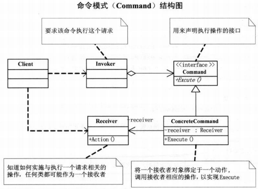 命令模式(Command),将一个请求封装为一个对象,从而使你可用不同的请求对客户进行参数化;对请求排队或记录请求日志,以及支持可撤销的操作。