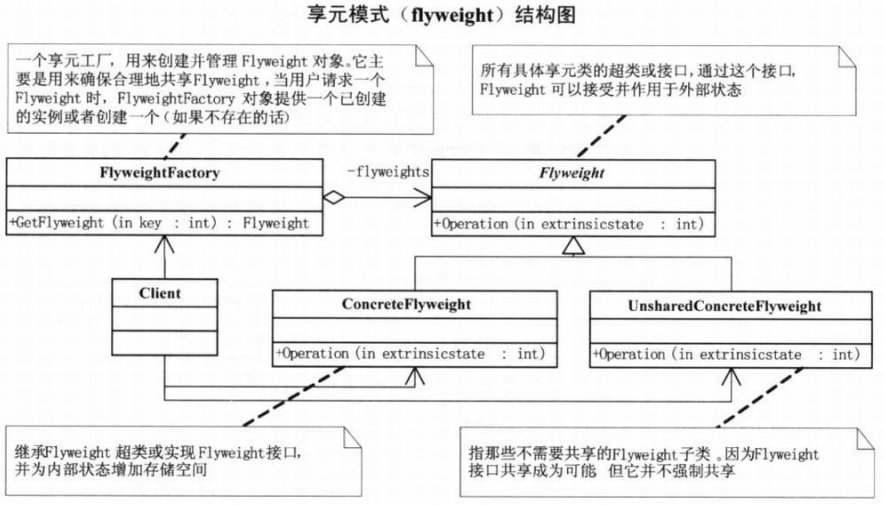 UnsharedConcreteFlyweigh t是指那些不需要共享的 Flyweight 子类。因为 Flyweight 接口共享成为可能,但它并不强制共享。