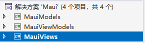 1. 项目建立三个项目,其中MauiViews是.NET MAUI应用,其余MauiModels和MauiViewModels是.NET MAUI类库。如下图。