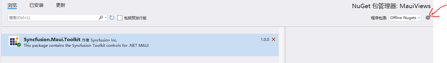 这样之后,我们以后可以直接使用,而不用自定义命名空间了。关于nupkg的本地安装,请大家通过下图箭头指处,配置目录。最后把编译好的NuGet本地包放入,安装正常安装就行。