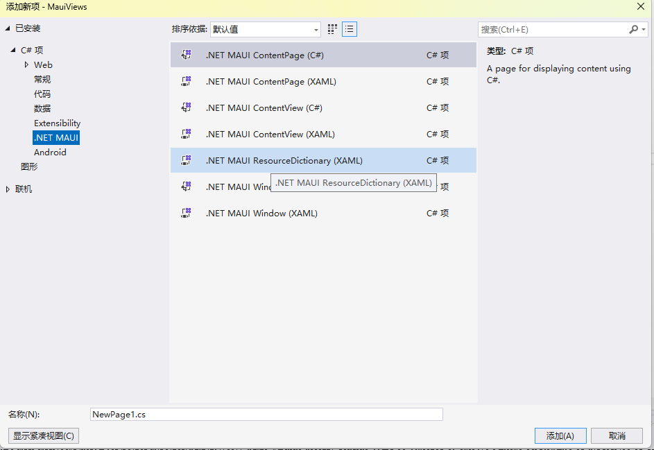其次,添加Index.cs文件到MauiViews项目下,之后添加的Demo,主页面都是默认View.xaml了。