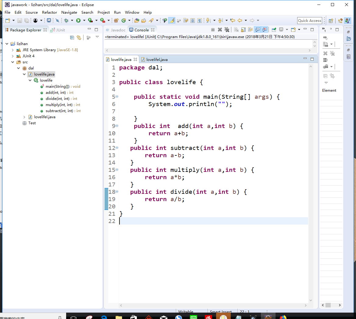 这次的作业虽然没有花费太多时间,但是也需要去用心学习,Java我之前自学的效果不好,安装好软件之后也没有进行太多的操练,经过老师留过这次作业后,我希望能够更多的联系下去。