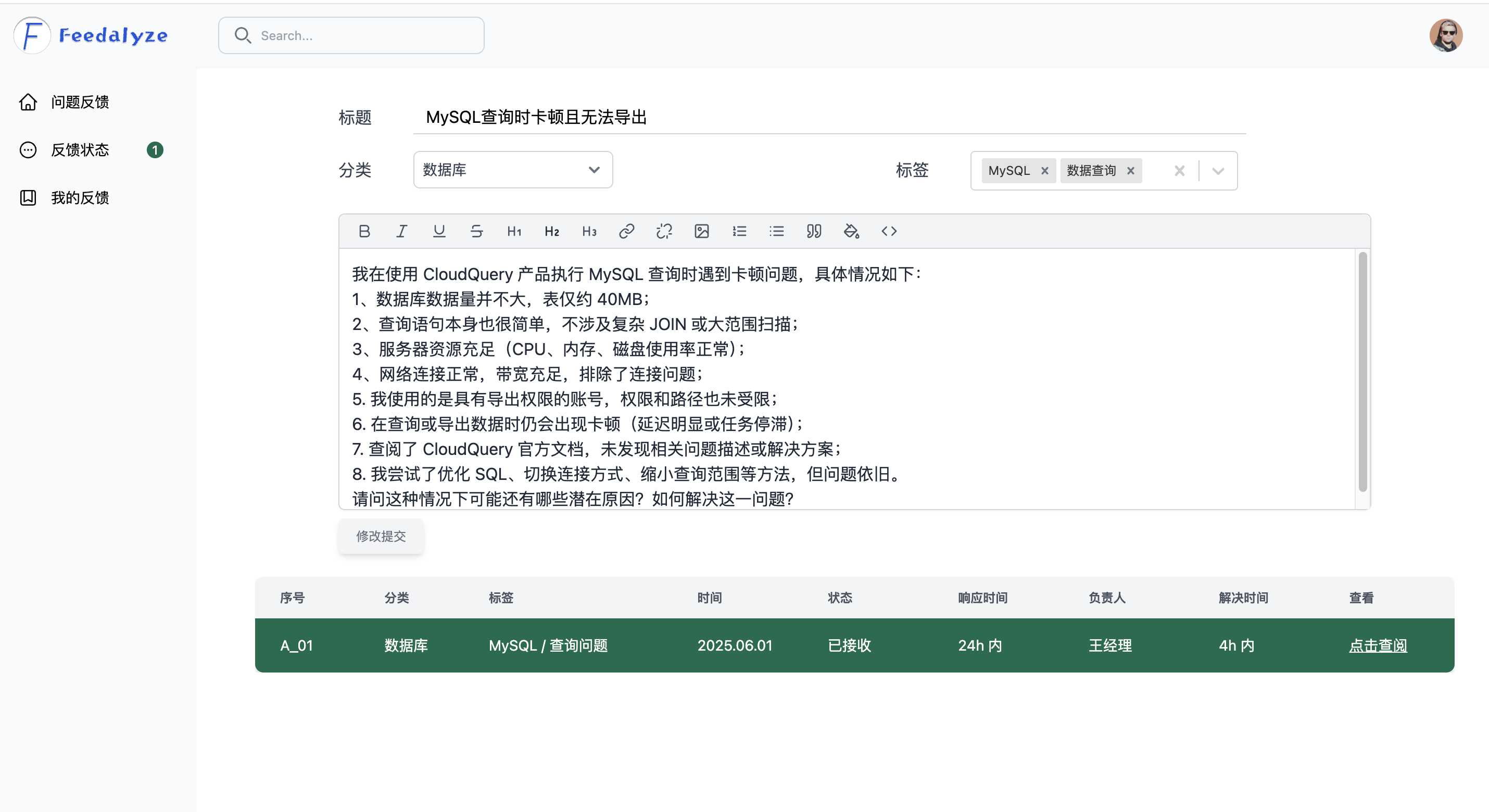 传统人工方式难以将这些反馈汇总,更无法标准化处理,极易造成信息遗漏或重复,且这些反馈的汇总又要耗费大量的人力和时间成本。