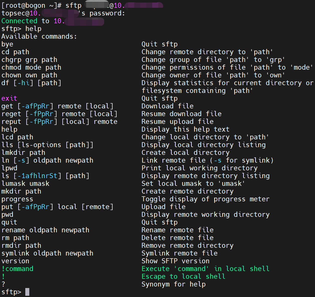 sftp相关命令参考:
